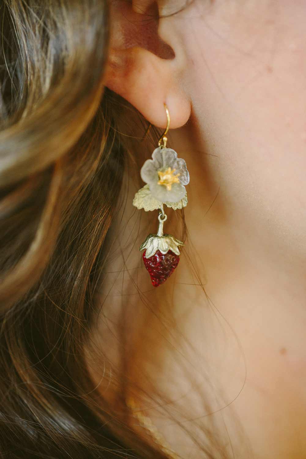 Strawberry Earrings - Flower Wire Drop - Michael Michaud Jewellery